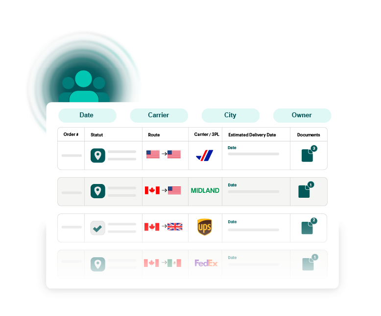 Ajoutez autant d’utilisateurs gratuits à votre organisation que nécessaire. Toutes les données d’expédition sont conservées au même endroit, ainsi n’importe qui dans votre équipe peut filtrer par date, transporteur, ville ou propriétaire de commande pour retrouver rapidement l’information, même si un collègue est absent.