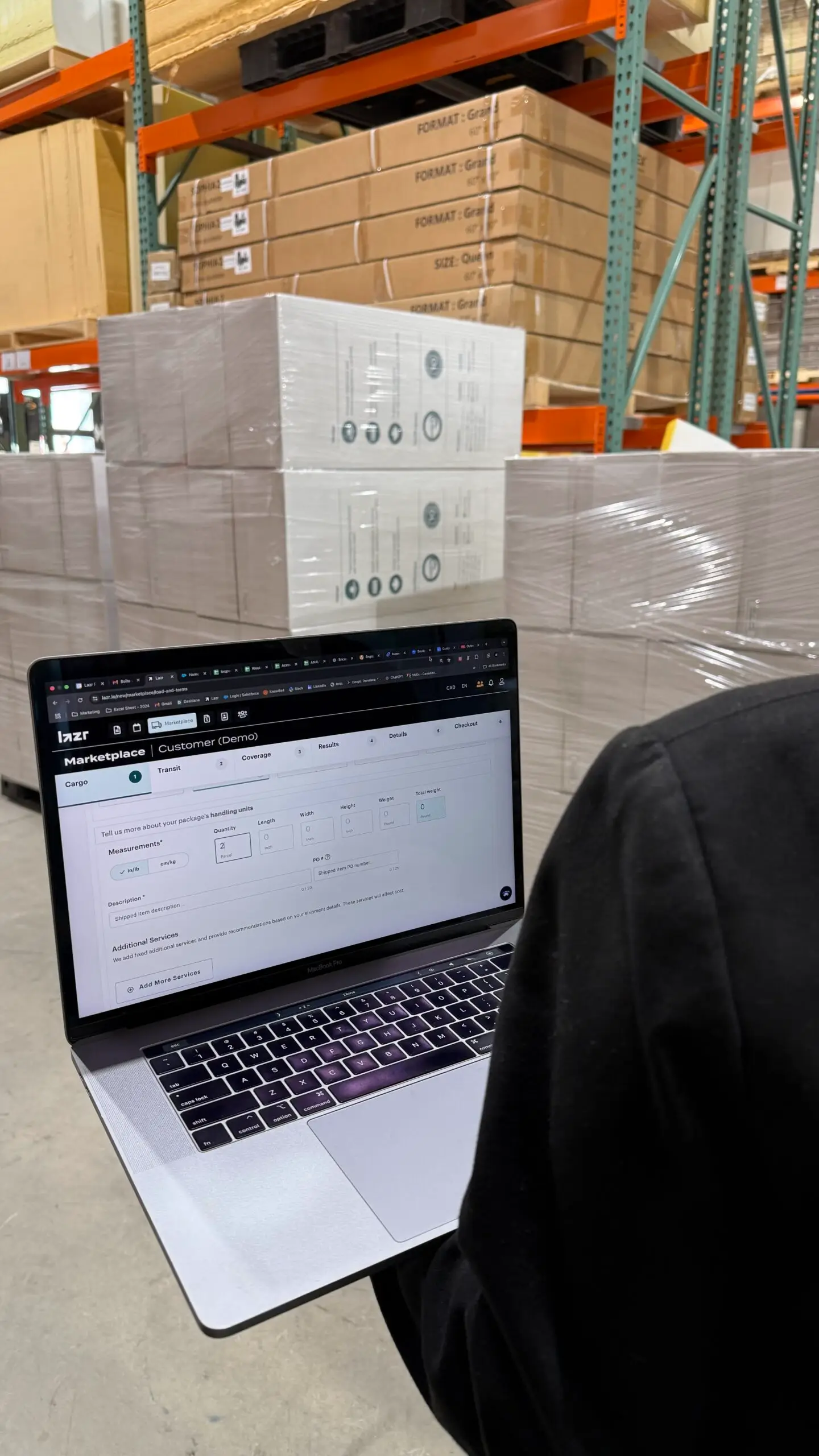 Plateforme en ligne de Lazr qui met en relation les expéditeurs et les transporteurs (similaires à celles communes à l’industrie du voyage), et qui vous permet de remplir les détails de livraison et de comparer instantanément les prix, les temps de transit et les niveaux de service de tous les transporteurs connectés.
